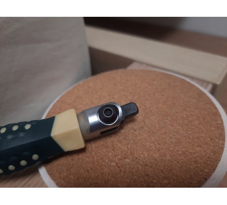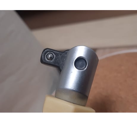 Вороток шарнирный укороченный с накаткой. Он имеет укороченную конструкцию, что позволяет легче работать в труднодоступных местах. Вороток оснащен посадочным квадратом размером 1/4". Длина воротка составляет 100 мм. Вороток также имеет накатку, которая обеспечивает надежное соединение с насадкой и предотвращает ее сползание во время работы. Резиновая ручка обеспечивает хорошую эргономику и комфорт при использовании трещотки. Она обладает антискользящими свойствами, что позволяет удобно удерживать инструмент в руке и снижает усталость при продолжительном использовании. Этот инструмент является незаменимым помощником при выполнении различных ремонтных или строительных работ.