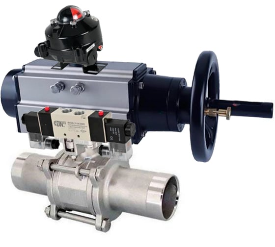 Шаровой кран DN.ru 304-304 LONG Ду100 Ру16 пневмопривод, пневмораспред, БКВ D160-58731