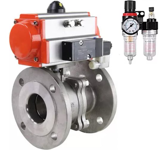 Шаровой кран DN.ru КШФП.316.200 Ду32 Ру40 с пневмоприводом, пневмораспределителем, БПВ D160-58511