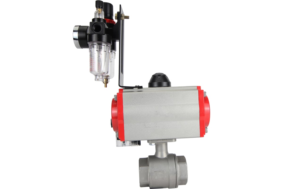 Кран шаровой DN.ru КШМП.316.230-ISO с пневмоприводом SA-105, пневмораспределителем PND2-S1EM-52-1NC-J08-24VDC, блоком подготовки воздуха APU1-10-40-V08 применяется в качестве запорной арматуры в системах теплоснабжения, водоснабжения, в паровых, топливных и пневмосистемах со сжатым воздухом и нейтральными газами.