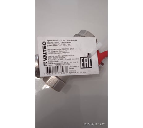 Вопросы и ответы о Valtec 1/2", FF рукоятка, с фильтром