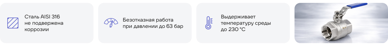 - Материал шара: нержавеющая сталь AISI 316 (аналог 08Х17Н14М2)