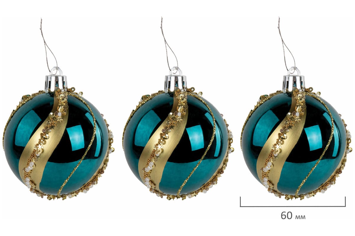 - 3 шара бирюзового цвета диаметром 6 см с золотистым рисунком с глянцевым эффектом