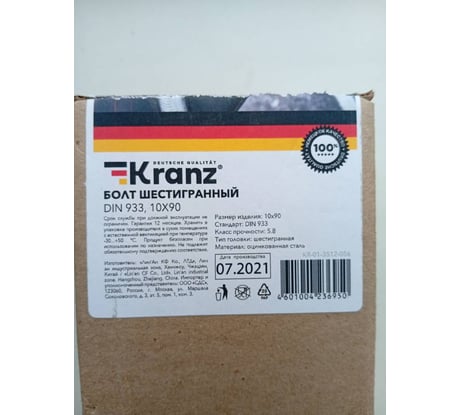 Вопросы и ответы о шестигранном болте KRANZ 10x80 DIN933 10 шт. KR-01-3512-055