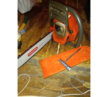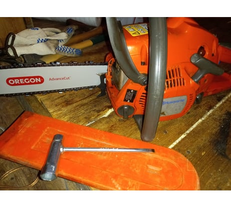Особенность данной шины - это шприцевание концевой звёздочки и это нужно делать, желательно, каждую заправку маслянного бачка, для данной операции нужен спец шприц, у меня орегон. Беру вторую такую шину, первую взял на Хускварну 135, эту взял на Хускварну 240. Вообще данная шина просто прекрасно встаёт на бытовые пилы Хускварна, например, 236, 240, 135, 140, 120 и т.д. На фото шина на хуске 240.