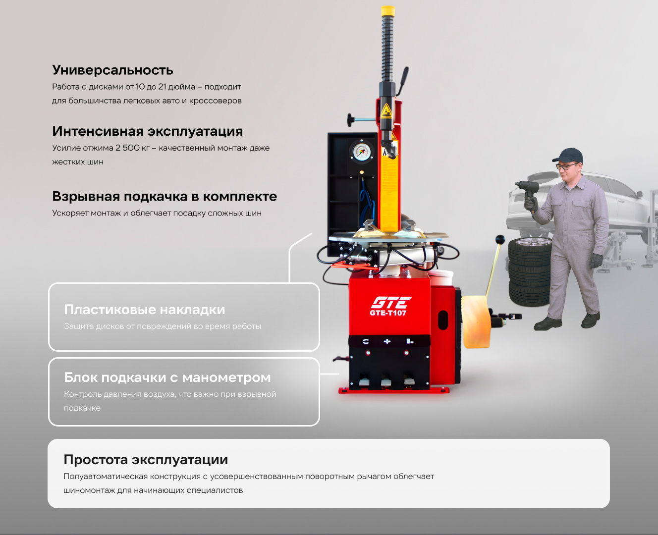 Технические характеристики шиномонтажного станка GTE GTE-T107