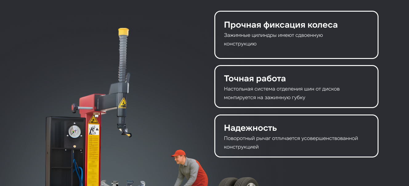 - Настольная система отделения шин от дисков монтируется на зажимную губку