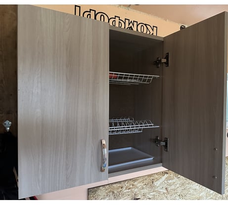 Ощущается дешевезна фурнитуры Положены белые заглушки для винтов, что крайне не сочетается с цветом бокови -, буду искать в цвет или оставлю как есть было бы хорошо, если на боковвх стенках были бы метки для петель Нет фотографий открытого шкафа в карточки товара