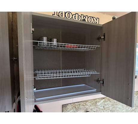 Просторные отделения и полки обеспечивают удобное и организованное хранение посуды, минимизируя беспорядок на кухне.