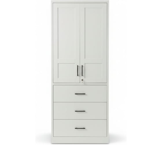 Шкаф гардеробный GRETTE — стильное и функциональное решение для хранения ваших вещей. Его просторное внутреннее пространство, разделенное на две секции с распашными дверями, позволит аккуратно разместить одежду, обувь и аксессуары. Три вместительных выдвижных ящика идеально подойдут для хранения белья, мелочей и других предметов. Изготовленный из прочной стали, шкаф отличается надежностью и долговечностью. Белый цвет фасада гармонично впишется в любой интерьер.