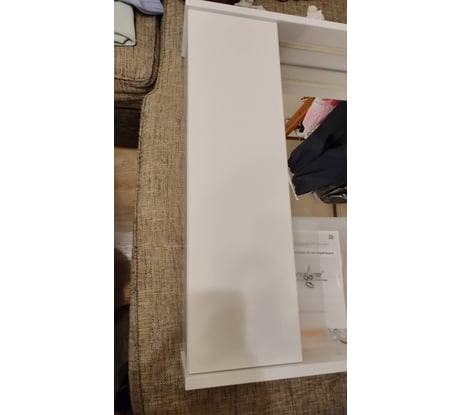 После распаковки обнаружили отслаивающиеся покрытие и криво прикрученную дверцу шкафа. Качество не впечатлило.