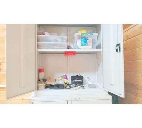 Шкаф для АЗС. Пломбируется, металл толстый. Вместимость 0.5 л — для мелких дорогих деталей. Замок надежный.