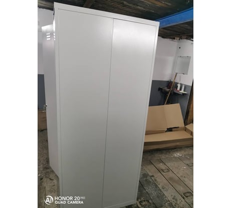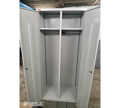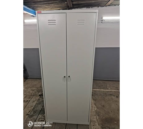 Удобный шкаф. Двухсекционный с двумя дверцами. Металл не тонкий. Ни каких изъянов.