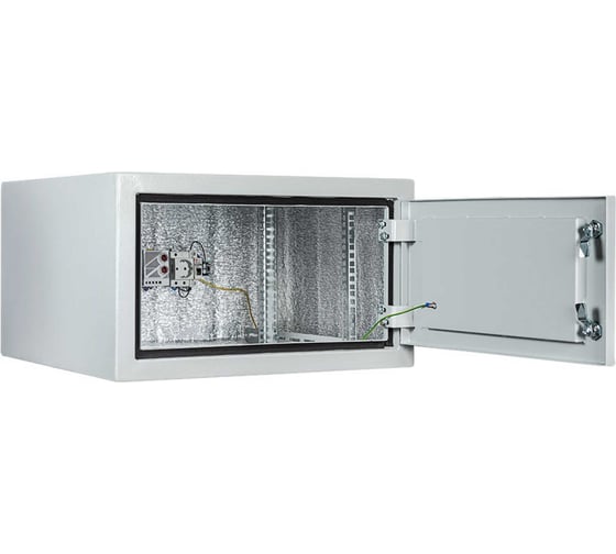 Шкаф телекоммуникационный настенный с электронным гигростатом, служащим для защиты оборудования в условиях повышенной влажности (осадки, пар или близость к любым водоемам).
