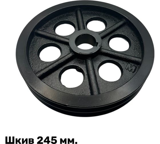 Шкив электродвигателя 38х245 мм (В2) ЭнергоРесурс 9917035 подходит к электродвигателю и поршневому блоку. Изделие имеет высокую прочность. Для уменьшения собственного веса конструкция дополнена отверстиями. Это обеспечивает максимальную передачу крутящего момента.