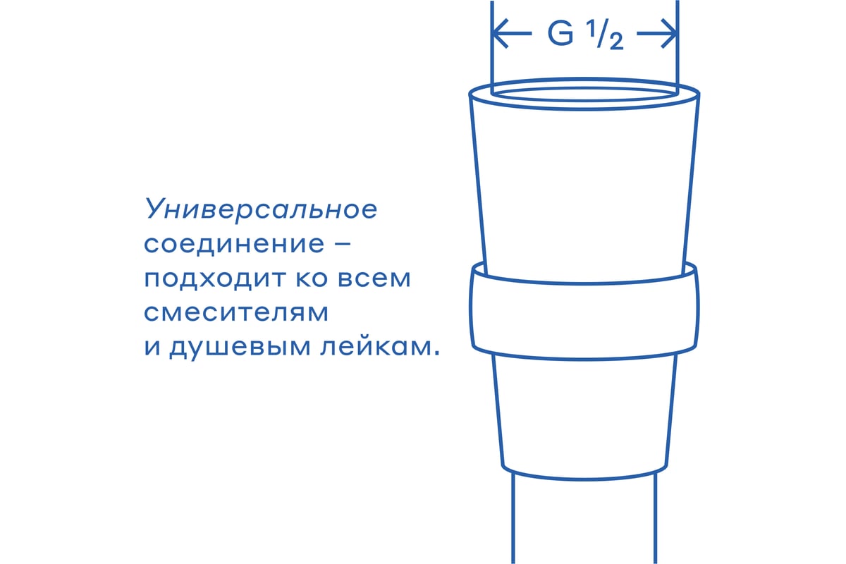 Оснащён лаконичными коническими гайками с 2 сторон. С ними душевая зона и ванная комната будут выглядеть эстетично и без лишних деталей. С универсальным диаметром подключения шланг подойдёт к любым смесителям, лейкам и душевым системам.