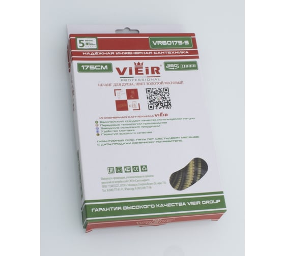 Шланг для душа ViEiR 150 см, металлическая оплётка, матовое золото 360 усиленный VR60150-S