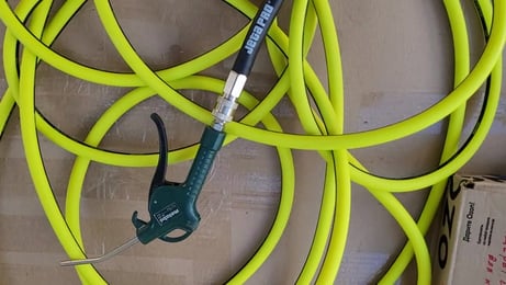 Начитавшись положительных отзывов на данный шланг, решила заказать его в данном интернет-магазине. Шланг мягкий, эластичный, но тонкий. Из-за этого он легко собирается в кольца, - был бы толще, такого бы не было. На быстросъём было много нареканий, поэтому сразу решила заменить его на Rectus, который приобретался давно. Открутила быстросъём и ужаснулась, - на опрессованной части внутреннее проходное сечение задушено! Сверло 5 мм проходит легко, а вот 6-ка уже не лезет! И это с обоих сторон. Можете представить, как они душат поток воздуха... Решила, что хороший быстросъём положение не исправит и вернула комплектный на место, но он начал травить... Рука-лицо! Видео прикреплю с родным быстросъёмом и после с Rectus, чтобы не писали, что у тебя обдувочный пистолет с трещиной и оттуда травит. Трещине на корпусе в районе резьбы, уже несколько лет, и из неё не травит воздух. Видео сын снимал. В общем, если знал бы, что такое похабное качество, то не купил бы данный шланг. Раньше данные шланги производились в Чехии, они были толще и немного мягче и так в кольца не сворачивались.