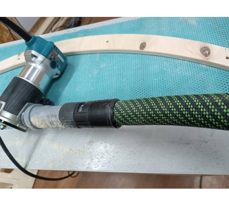 Общее впечатление положительное. Выглядит дорого, сделан неплохо. В меру гибкий. Резиновая муфта на конце не самая мягкая, но для большинства моего инструмента подошла (налезла/вставилась). По поводу антистатических свойств ничего плохого сказать не могу. У меня "пробития" в руки не было. А древесная пыль, опилки действительно не прилипают! Длина пять метров. Разбирается легко. Антистатическая оплётка тканевая.