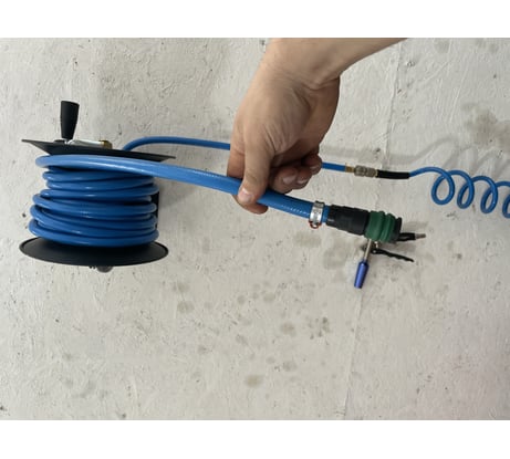 Пневмокабель на катушке, длина 15м - длина соединения 60см . Можно установить на стену или пол. Шланг подключается с помощью стандартных быстроразъемных соединений.