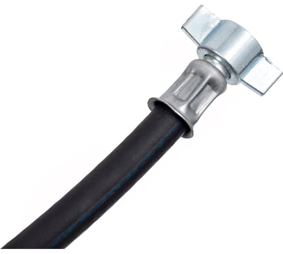 В комплектацию шланга входят: "барашек" (гайка) которая накручивается на выход ресивера вашего автомобиля, с противоположной стороны шланга находится разъем " прищепка"