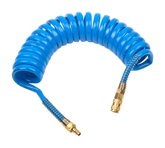 Удобное использование. Упругая спираль шланга не создает неудобств оператору пневмоинструмента, и после завершения работ принимает прежнюю форму.