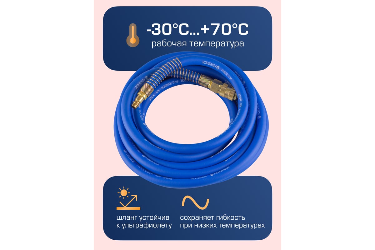 Представляем вам резиновый воздушный шланг армированный с фитингами от бренда Forsage, который станет незаменимым помощником в различных сферах, где требуется передача сжатого воздуха!