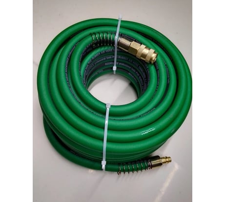 Хороший армированный шланг для компрессора. Длина 15 метров — хватает на весь гараж. Фитинги качественные, не текут при давлении 8-10 бар. Гибкий, не переламывается на сгибах. За полгода работы с пескоструем и краскопультом — износ минимальный. Цена радует.