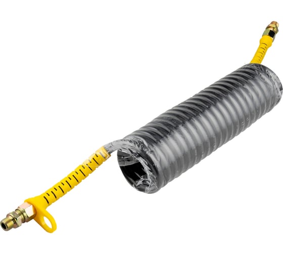 Шланг спиральный прицепной с наружной резьбой М16, 8х12мм, PBC006, 5м - пневматический спиральный шланг предназначен для пневматического соединения магистралей между тягачом и прицепом в грузовых автомобилях. Данный шланг также используется в качестве удлинительного элемента между компрессором и пневматическими инструментами.