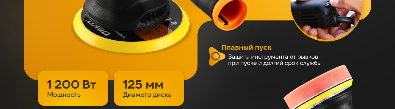 Шлифмашина полировальная орбитальная сетевая PDK-1200, 125мм, 1200 Вт DEKO 085-1064