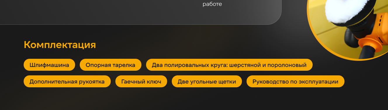 - Полировальный круг (шерстяной, поролоновый) - 2 шт