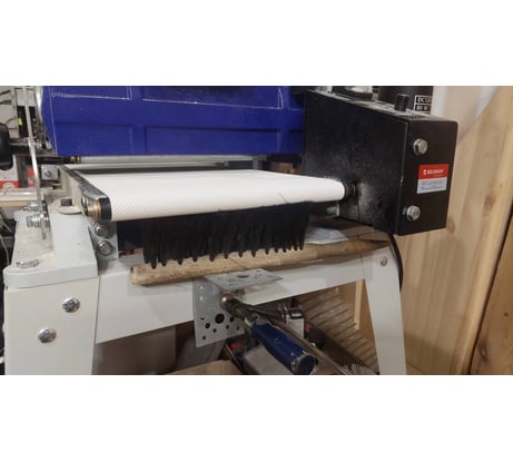 Автоматическая транспортная лента обеспечивает равномерную подачу заготовок в рабочую зону. Скорость движения можно регулировать в диапазоне от 0 до 3.5 метров в минуту. Это позволяет значительно облегчить и обезопасить работу пользователя на станке. Лента оборудована отдельным коллекторным электродвигателем мощностью 80 Вт.