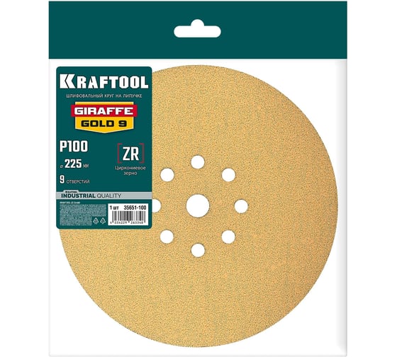 Шлифовальный круг KRAFTOOL Giraffe GOLD-9 225 мм, Р100, на липучке, 9 отв. 35651-100