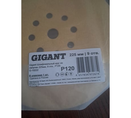 Отзывы о шлифовальном круге на липучке 225мм, 9 отв., Р120 Gigant G-10222