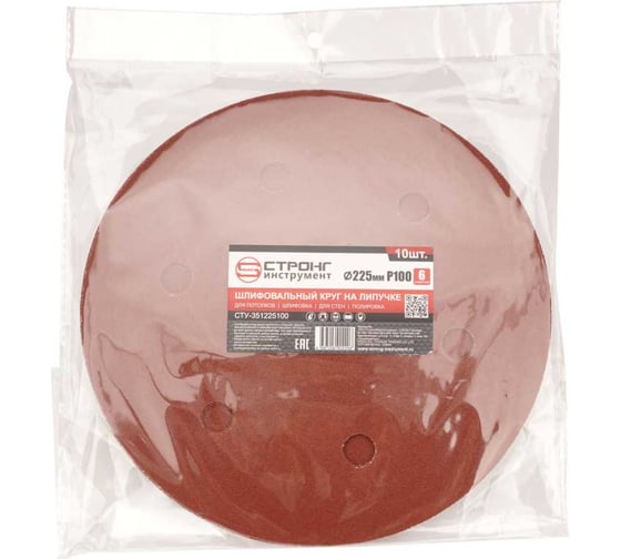 Шлифовальный круг на липучке Strong 6 отверстий 225 ММ Р100 (упаковка по 10 шт) СТУ-351225100