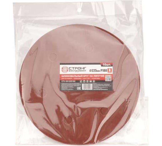 Шлифовальный круг на липучке Strong 6 отверстий 225 ММ Р180 (упаковка по 10 шт) СТУ-351225180