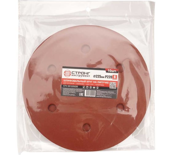 Шлифовальный круг на липучке Strong 6 отверстий 225 ММ Р220 (упаковка по 10 шт) СТУ-351225220