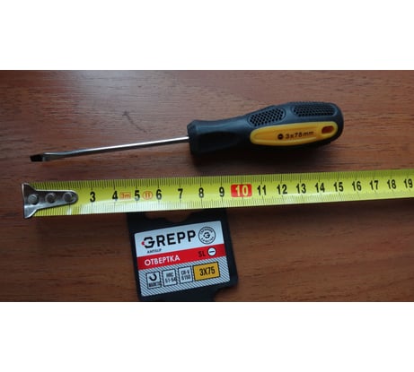 Отзывы о шлицевой отвертке GREPP SL3*75мм, CrV, 2х-компонентной рукоятке 202-002