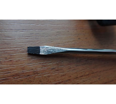 Шлицевая отвёртка хорошего качества, хорошая рукоятка, хорошо сидит в руке, не скользит, на ломается, стержень не проворачивается, низкая цена отвертки и качество на высоком уровне. Отвёртка то что надо для мелких работ обладает достаточной прочностью