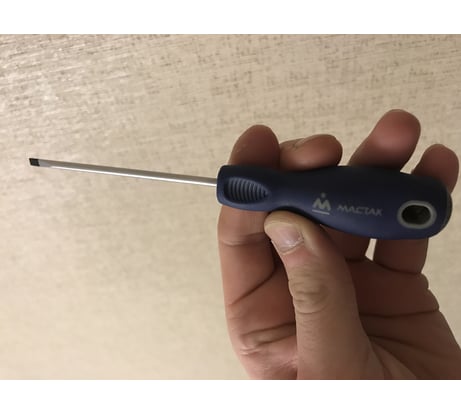Отличная отвертка от именитого бренда. Крепкий шлиц не стерся и не деформировался, не гнется и не ломается. Самое удобное - рукоятка с каким то хитрым покрытием, к которому никакая грязь не пристает.