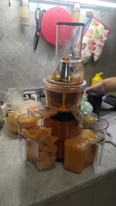 Очень качественная соковыжималка, получается вкусные соки. Подходит больше для цитрусовых, манго, бананы. Гранатовый сок лучше в ней не делать. Жмых выходит сухим, остальное всё в сок уходит