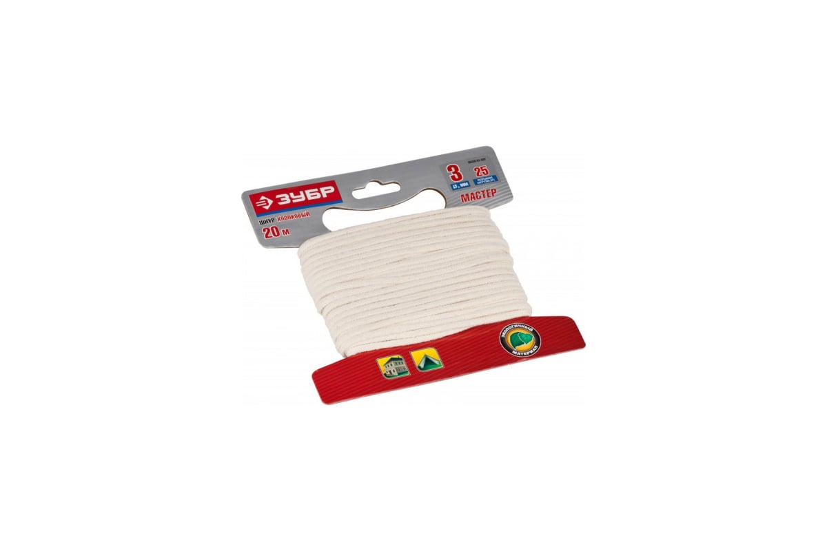 Шнур хлопковый Зубр плетеный, натуральный, без сердечника, диаметр 4 мм, 20 м 50350-04-020