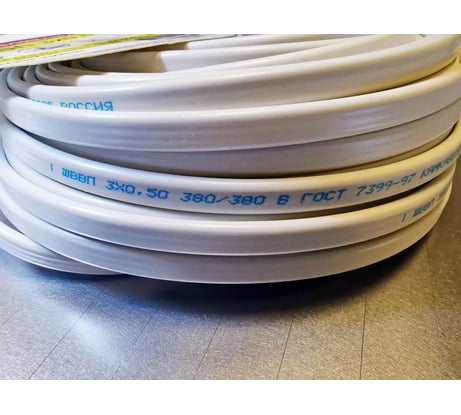Качественный отечественный кабель с медной жилой, изготовленный по ГОСТ. Большая упаковка 20м экономичнее. Кабель легко гнётся в плоскости, но жестковат при изгибе "ребром". Зачищается легко. Сама жила из качественной меди, паяется хорошо. Вообще, кабель 0,5мм2 с тремя жилами довольно редки, но отличное решение для подключения небольшой нагрузки, где двух жил недостаточно, например с заземлением или с управляющим проводом.