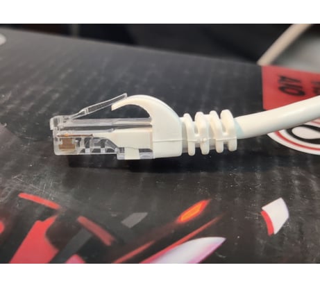 Хороший кабель из мягкой многожильной витой пары. Несмотря на одинаковую маркировку, немного мягче чем аналогичный серый. Дефектов литья или обжатия нет.