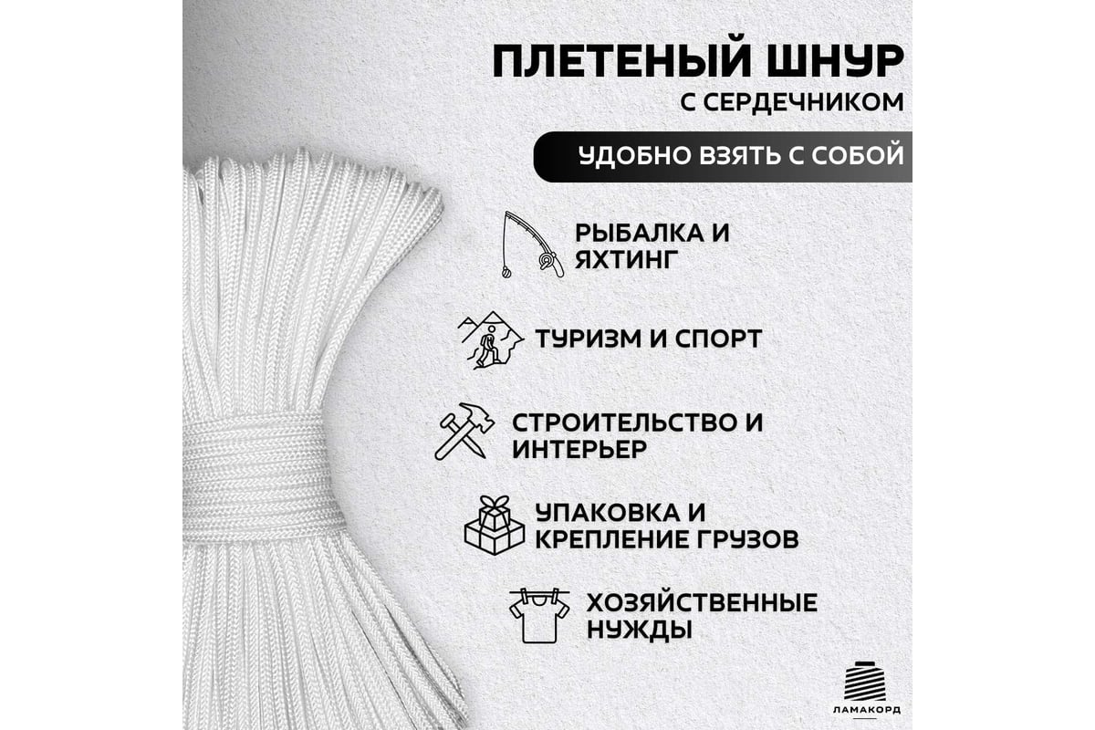 Используйте ее как веревку для тентов и палаток, бельевую веревку для бытовых нужд или для крепления якоря на лодке. Полиамидный материал делает шнур легким, устойчивым к влаге и ультрафиолету, что позволяет использовать его в любых уличных условиях.