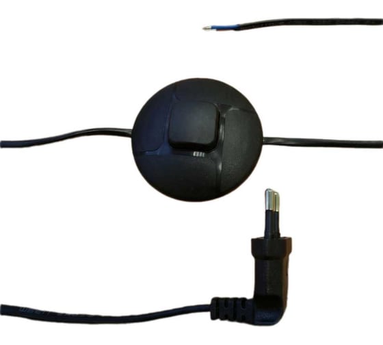 - Шнур сетевой с ножным выключателем и угловой вилкой ШВВП 2х0,5-25-2 м черный - 1 шт.