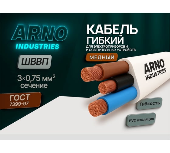 Шнур ШВВП ARNO INDUSTRIES 3х0.75 белый 100м до 380В гибкий для электропитания ТРТС 222487