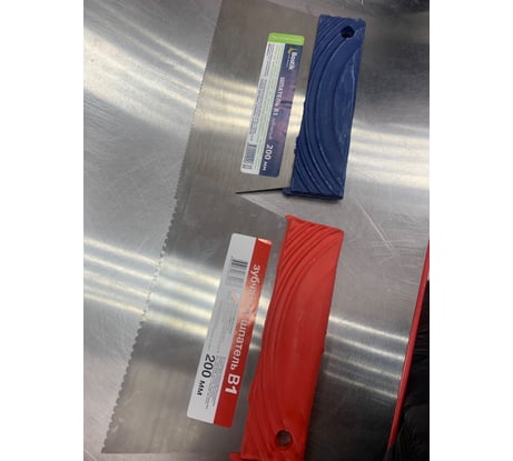 Качественный шпатель для нанесения клея, пластина выпрлнена из упругой ствли, удобная полиуретановая ручка.
