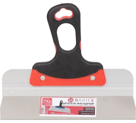 Шпатель фасадный BARTEX, нерж сталь, 250 мм, прям, рук двухкомп, Евро, 615026 312173
