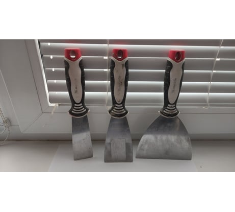 мне шпатель понравился . ручки у шпателей держатся хорошо не разболтались со временем ( в пользовании примерно 9 месяцев не частого использования) . у меня не поржавели ( может всё зависит от партии или может у человека попался брак но у меня все три шпателя без ржавчины )